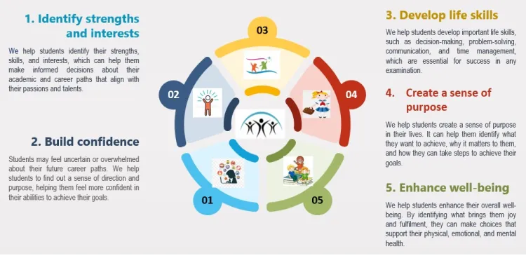 In a rapidly changing world, high school students face numerous challenges, including adapting to change and excelling academically in a competitive environment. Our mission is to provide comprehensive support beyond the curriculum, helping high school students navigate these obstacles and prioritize their well-being. We believe in fostering self-awareness and empowering informed decisions about future careers. By nurturing emotional well-being and equipping them with adaptability skills, we create an environment where academic success and personal growth flourish. Our counselling includes helping them identify their strengths, weaknesses, and areas of interest, while managing anxiety related to academic stress and uncertainty. Students may experience issues such as loss of motivation, hopelessness, fear of the future, insecurity, unsure of what they want, feeling emotionally overwhelmed, Lack of concentration, and strained interpersonal relationships during adolescence. The student's academic life can be adversely affected by all of these factors. Our dedicated team of psychologists is committed to helping students navigate these changes smoothly, ensuring their academic thriving. Through our network of inter-disciplinary expert academicians, we provide students with information about diverse career opportunities and prepare them for success in their chosen careers.